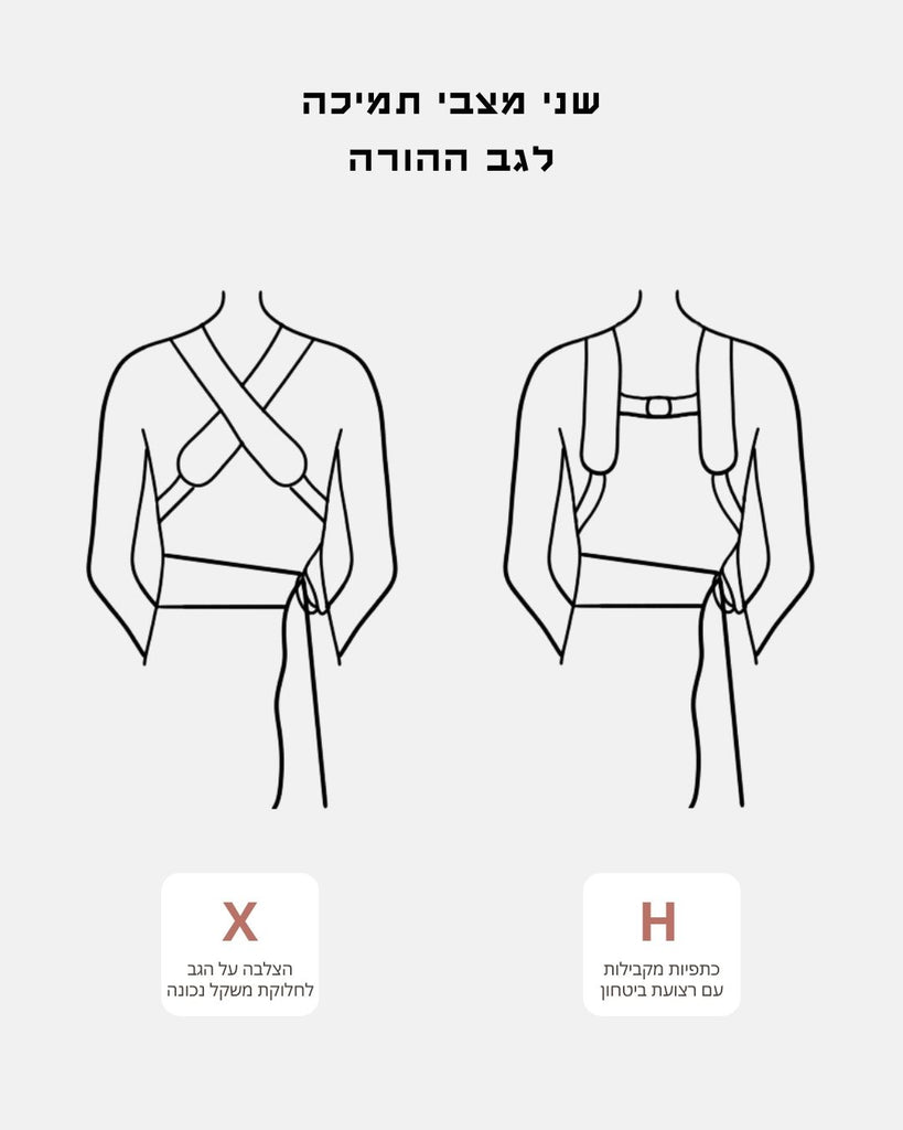 ניתן להשתמש עם המנשא ברצועות מקבילות או מוצלבות